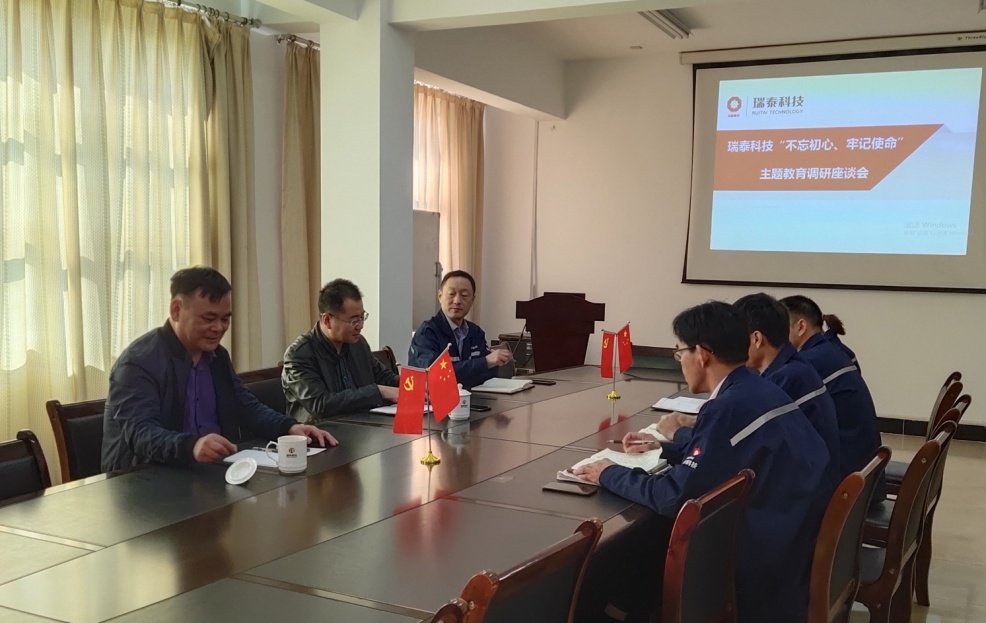 10月16日上午,瑞泰科技股份有限公司副總經理白雪松到開源耐磨公司開展“不忘初心、牢記使命”主題教育專題調研,開源耐磨公司班子成員、部分管理人員參加調研。